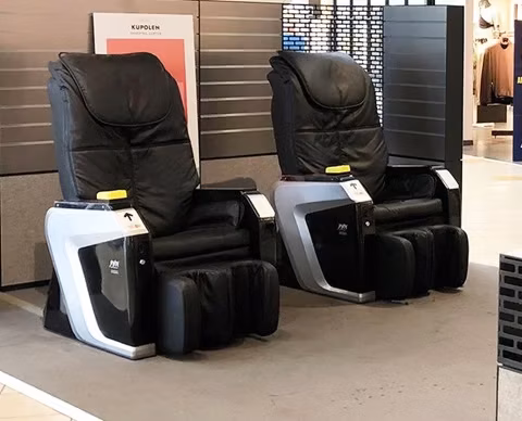 När ryggen är trött och du behöver en paus i shoppandet, finns massagefåtöljer på plan 2 vid Stadium och på Plan 1 vid Scorett. Betalas med kort.