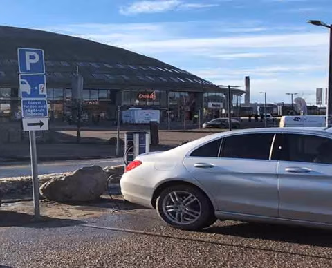 Laddstation för Elbilar. Om du kör elbil så kan du ladda din bil vid norra parkeringen hos oss på Kupolen.