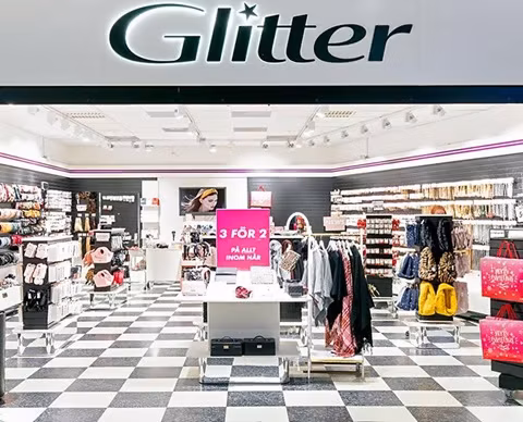 Glitter har idag 51 butiker runt om i landet och en onlinebutik som varje vecka uppdateras med spännande nyheter. Varmt välkommen in till butiken och upptäck vårt utbud av klassiska och säsongens senaste trender inom örhängen, ringar, halsband, väskor, håraccessoarer och mycket mer.